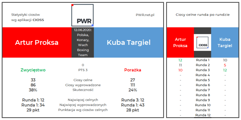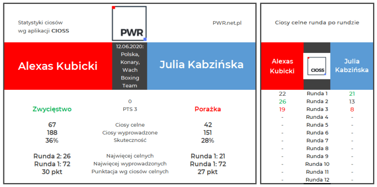 Kolejny test aplikacji CIOSS wypadł pomyślnie, choć nie obyło się bez drobnych problemów technicznych. Podczas walki Huberta Benkowskiego z Maciejem Ważnym zerwało nam połączenie internetowe, przez co nie byliśmy w stanie przygotować pełnego zestawienia. Cała reszta przebiegła bez zarzutu.
