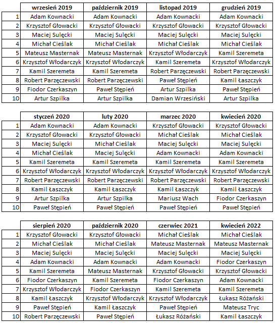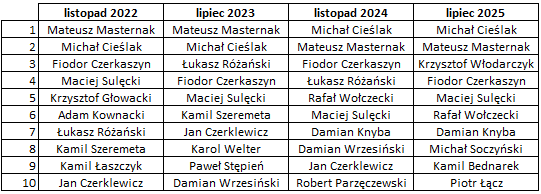 MĘŻCZYŹNI TOP 10, lipiec (stan na 15.07.2025)