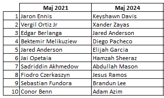 5. Elijah GARCIA, USA, (16-0-0, 13 KO): 57 punktów (debiut).